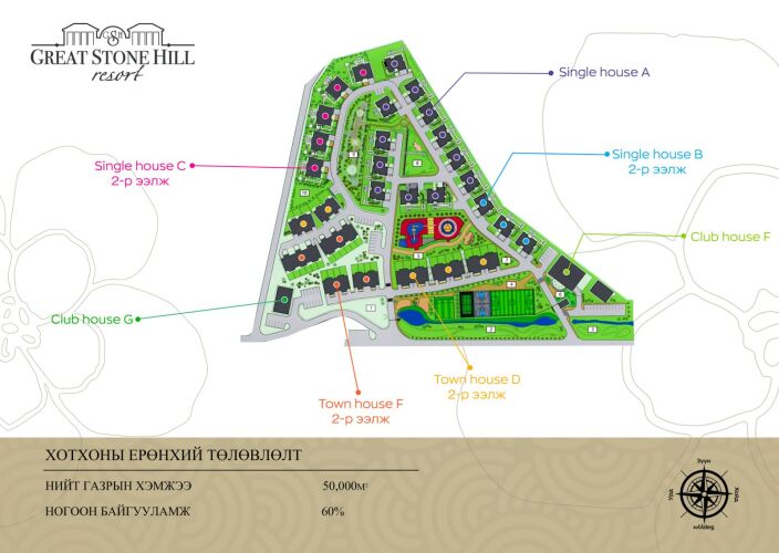 🍀 Хотхон нь 60%-н ногоон байгууламжтай, байгальтайгаа ойр, хотын дуу чимээнээс хол, өндөр зэрэглэлийн цөөхөн айлтай хаус хотхон