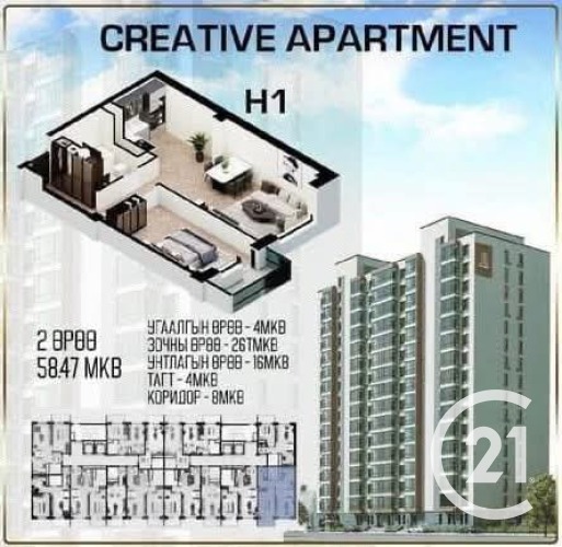 CREATIVE APARTMENT 2 ӨРӨӨ ЗАРНА