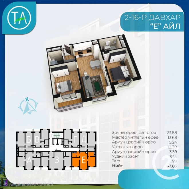 Twin diamond 67,77м2 3 өрөө худалдана