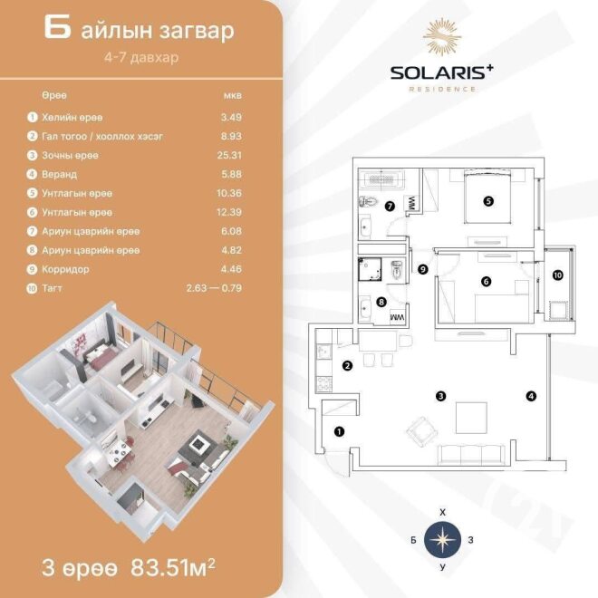 83,51м2 | 3 өрөө | 5 давхарт
