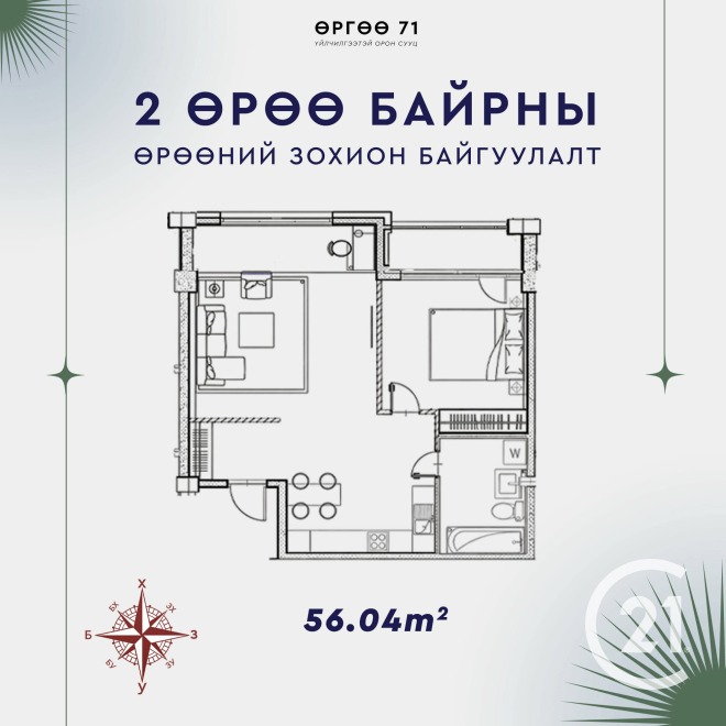 Нарны зам дагуу ашиглалтанд орсон "Өргөө 71" үйлчилгээтэй орон сууцанд 2 өрөө байр сонголттойгоор борлуулна