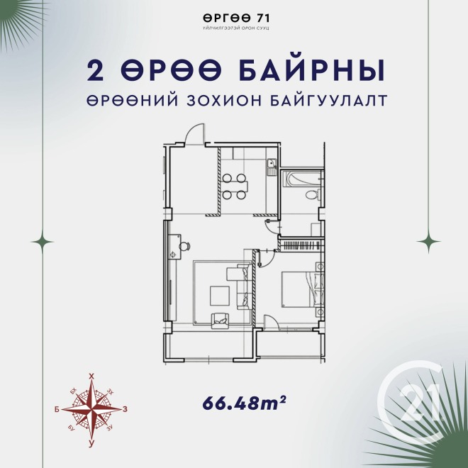 Нарны зам дагуу ашиглалтанд орсон "Өргөө 71" үйлчилгээтэй орон сууцанд 2 өрөө байр сонголттойгоор борлуулна
