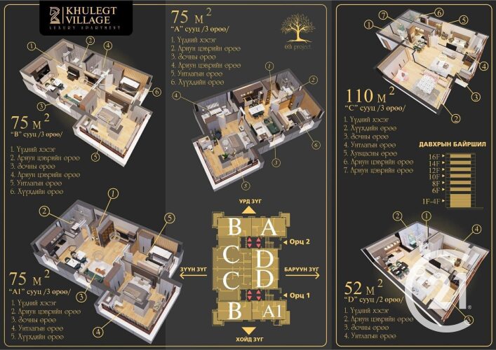 "Khulegt Village Korea Town"-нд 52 м.кв 2 өрөө орон сууц худалдана.