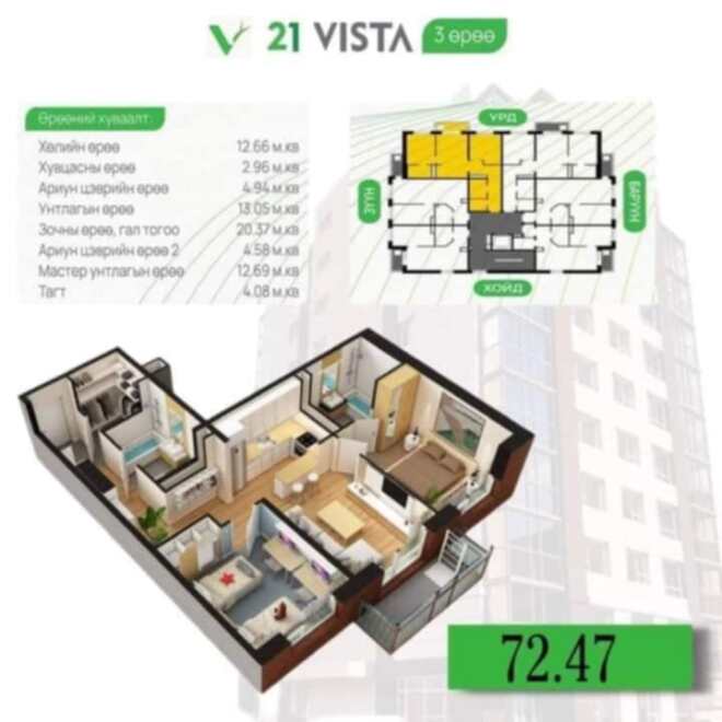 21 Vista - д 2 өрөө байр худалдан.