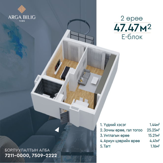 #Хангай хотхоны хойно Арга Билиг хотхонд шинэ ашиглалтанд орж байгаа 47.47мкв 2 өрөө байр худалдана.