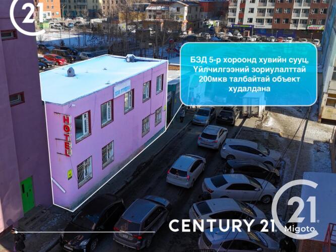 БЗД, 5-р хороо, Кино үйлдвэрийн хойно байрлах зочид буудлын зориулалттай объект худалдана