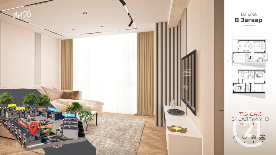 Гачуурт, Art 26 cottage house төсөл 131м2
