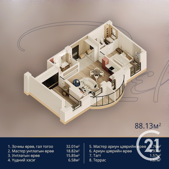 Арцат Форчюн төсөлд 3 өрөө